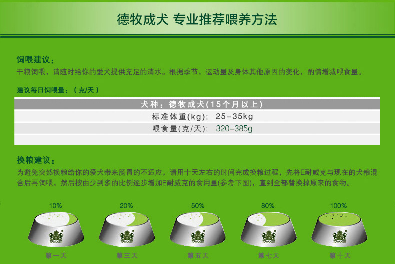 干糧飼喂,請隨時給您的愛犬提供充足的清水。根據季節(jié)、運動量及身體其他原因的變化,酌情增減喂食量。