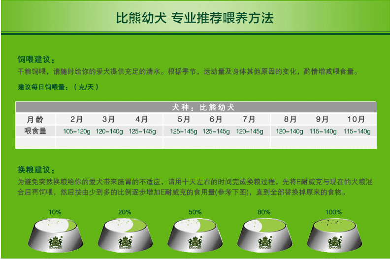 干糧飼喂,請隨時給您的愛犬提供充足的清水。根據(jù)季節(jié)、運動量及身體其他原因的變化,酌情增減喂食量。